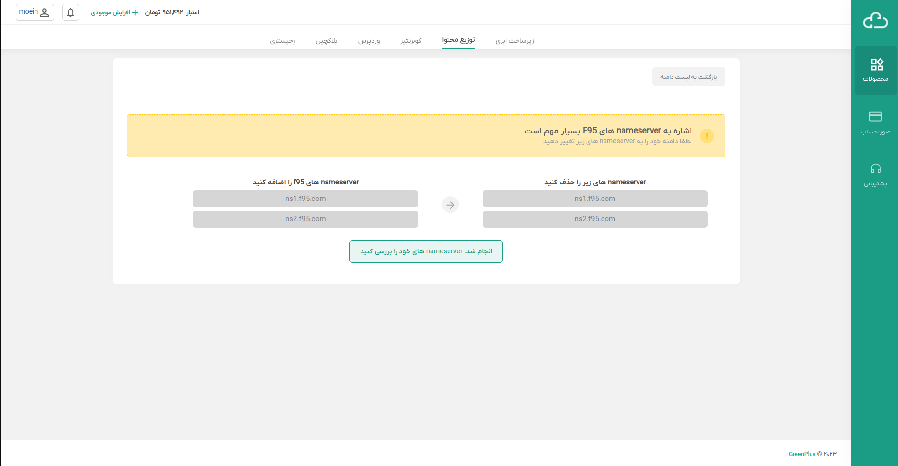 بعد از اینکه nameserver های مورد نظر را تغییر دادید، وارد قسمت مدیریت توزیع محتوای خود یا همان داشبورد می شوید.
